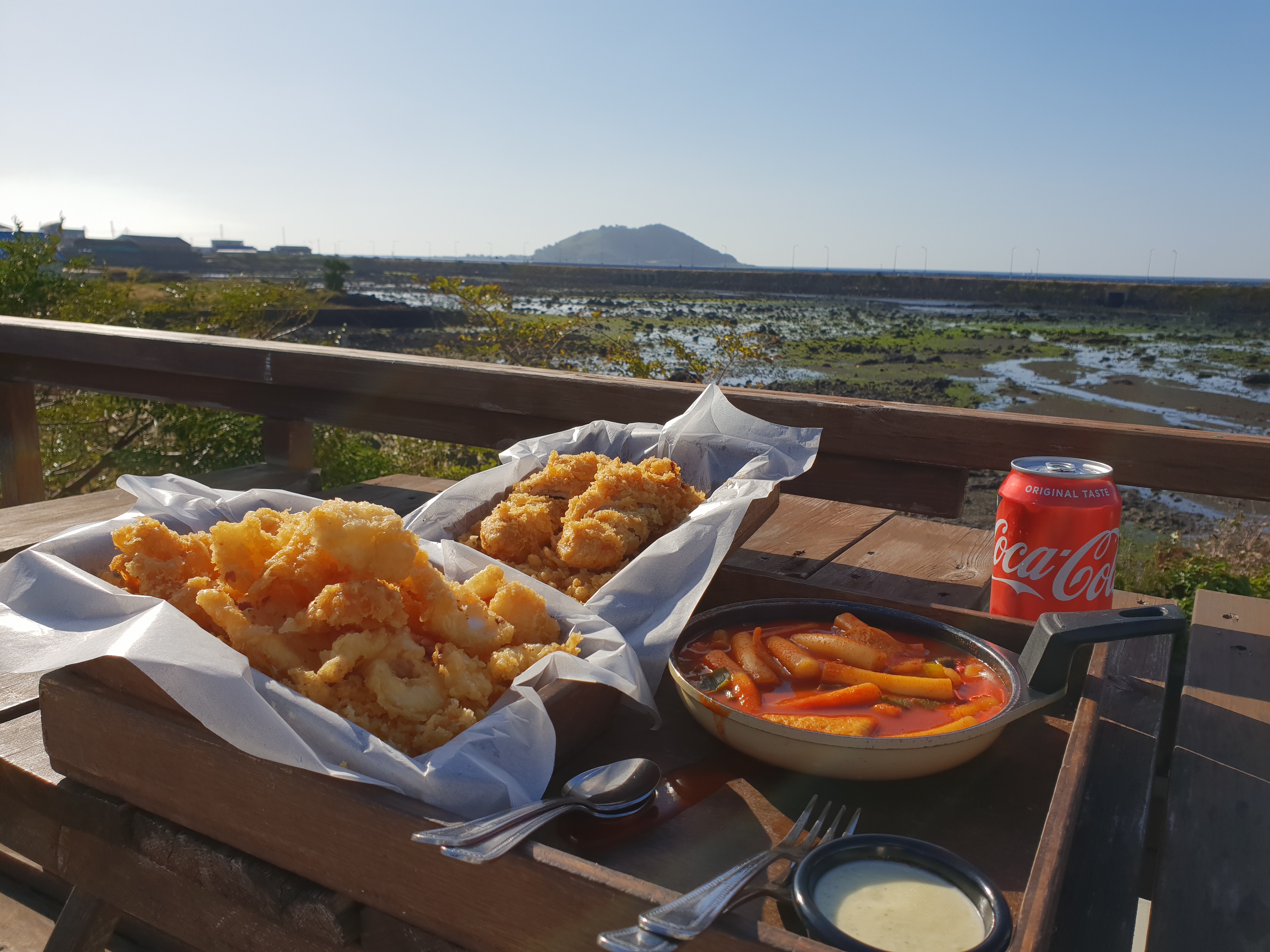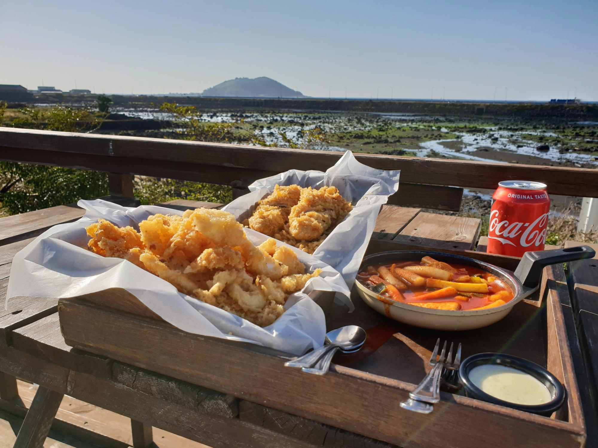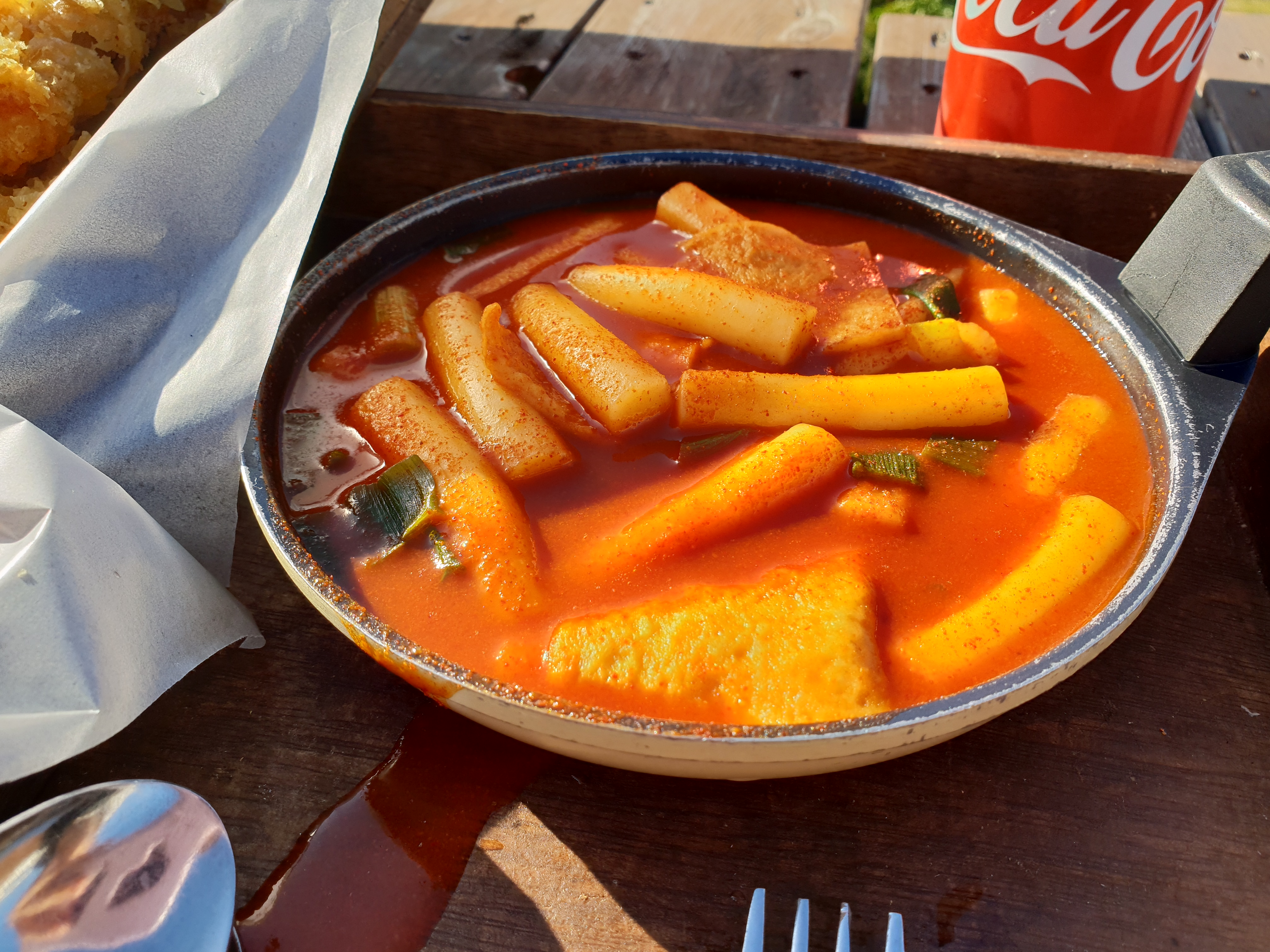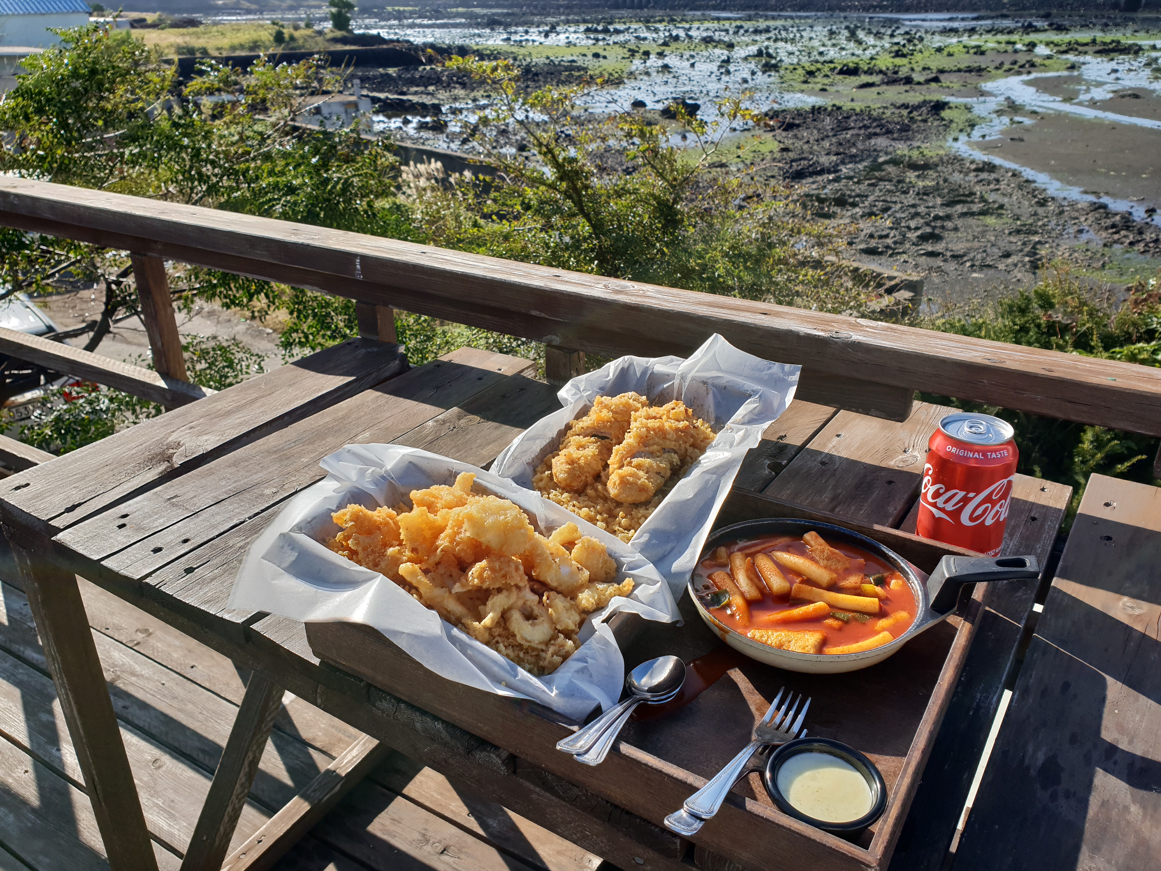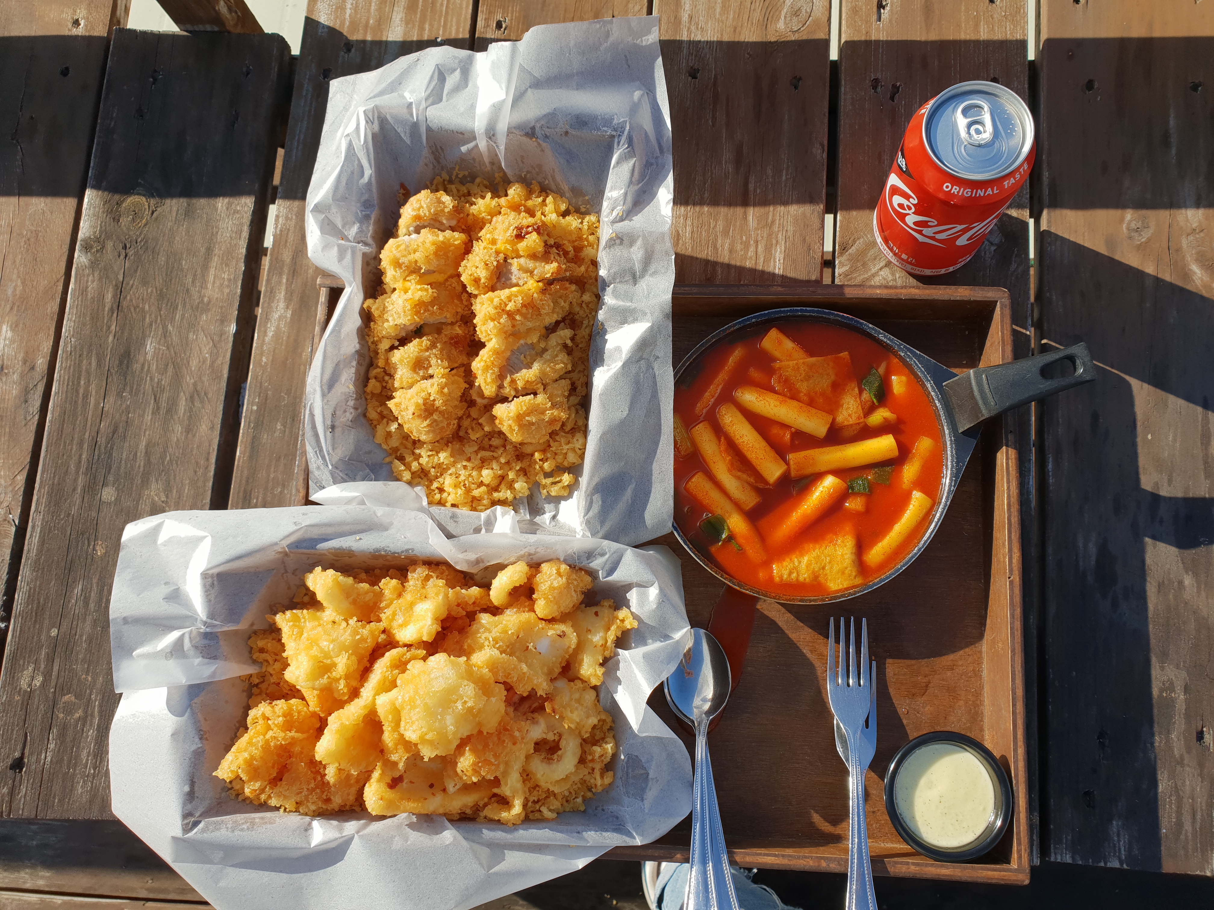 따스한 햇살 아래 바라보는 떡볶이&튀김 조합