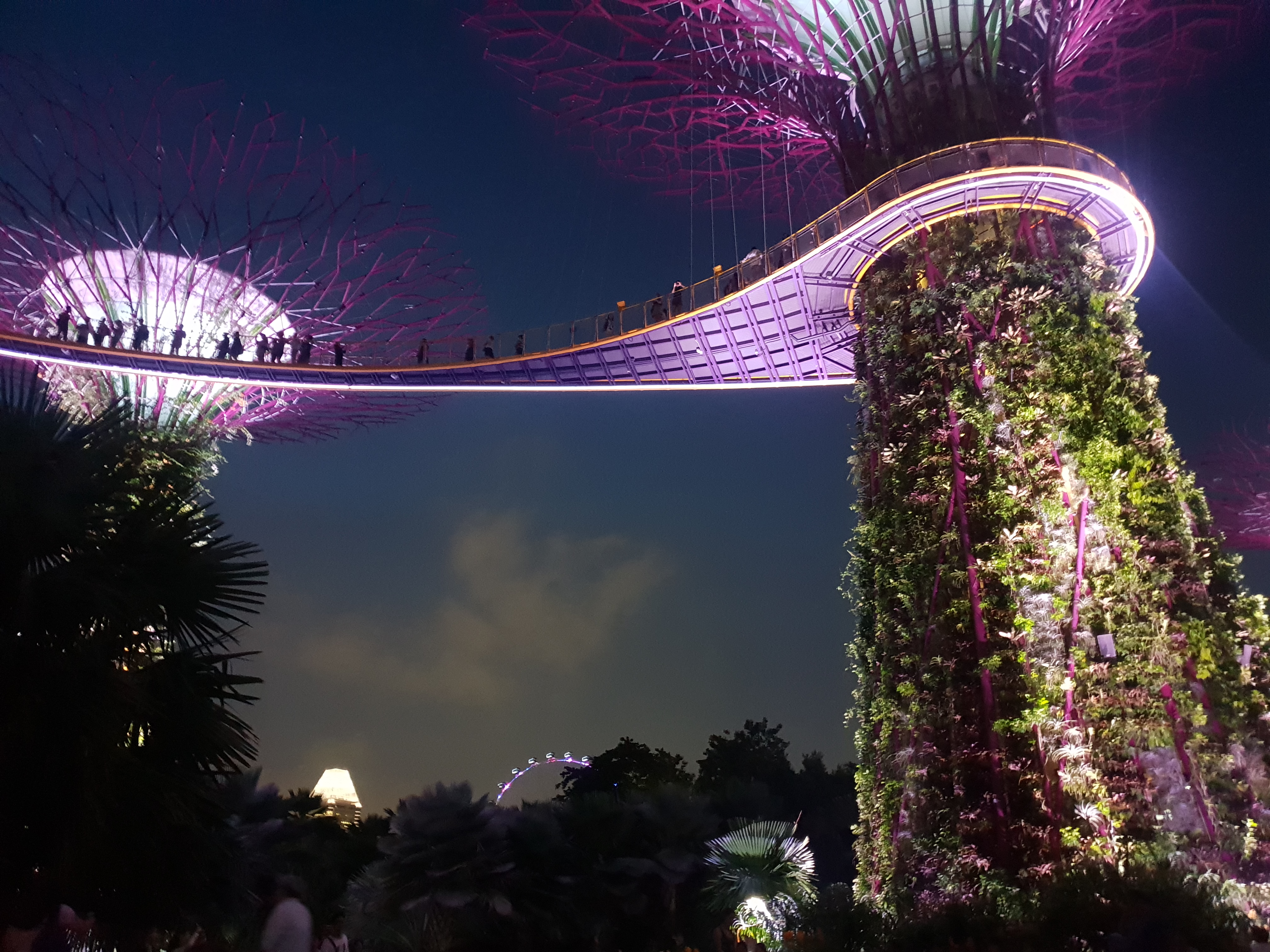 슈퍼트리쇼를 위한 거대 인공나무 아래에