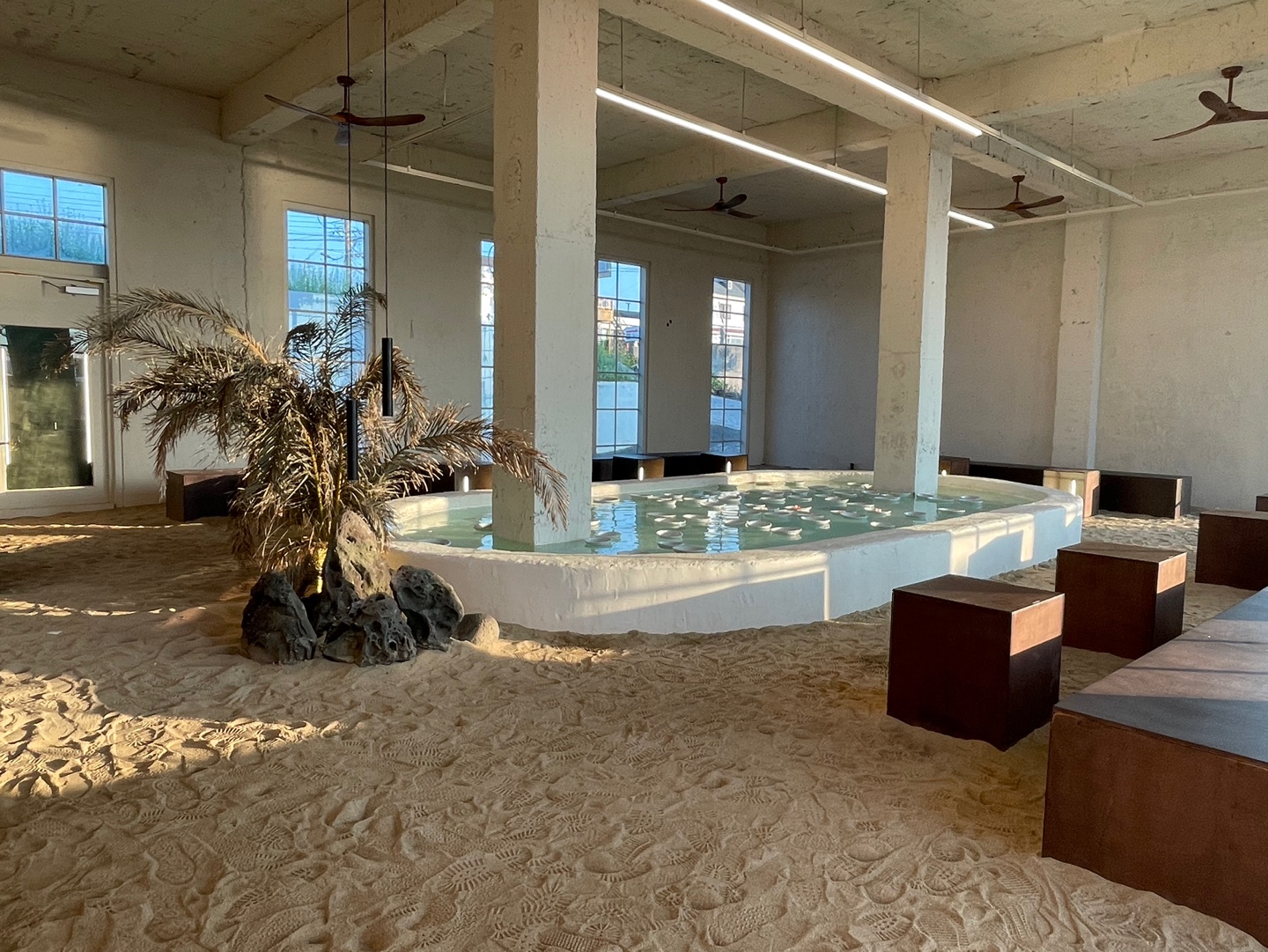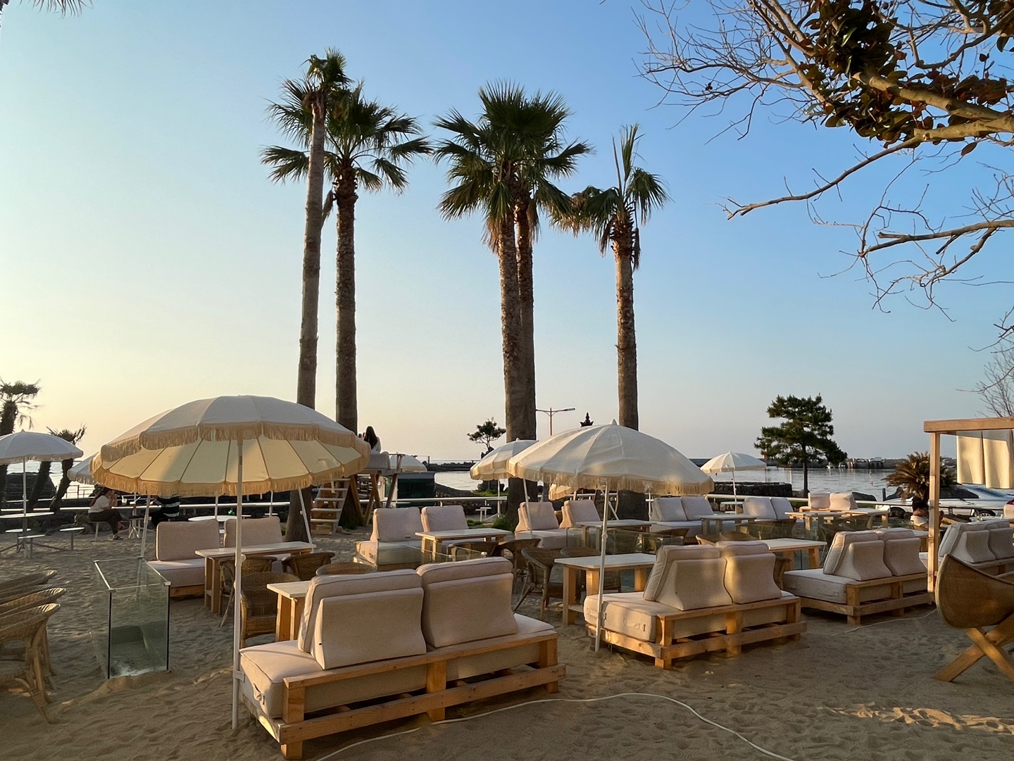 인공적으로 모래사장을 조성해놔서 해변에 있는 듯한 느낌을 줘요