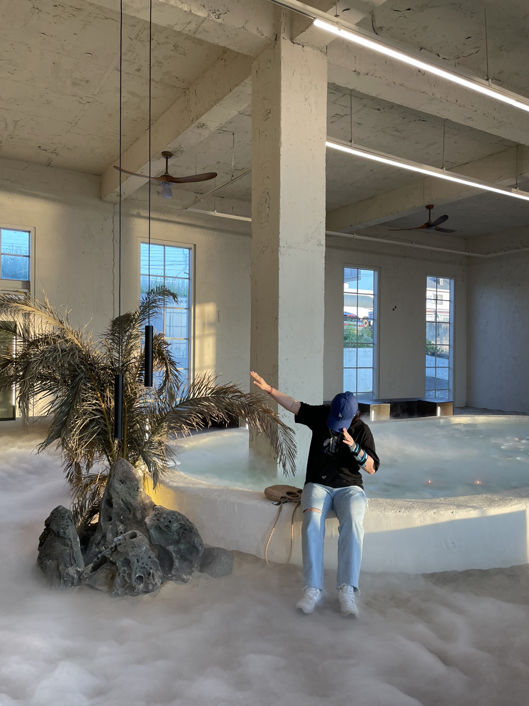 수증기가 메인공간을 가득 메워 마치 구름 위를 걷는 기분이 들게끔해주고